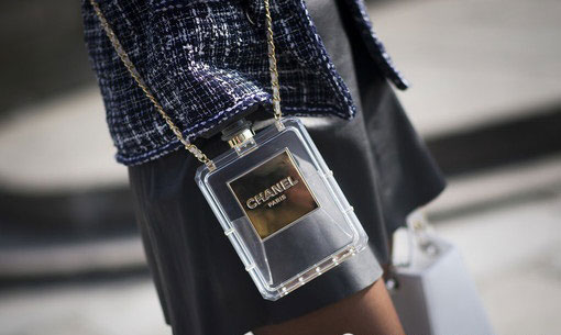 Chanel香水瓶造型今年是熱得發(fā)燒,優(yōu)雅的設(shè)計(jì)與經(jīng)典的logo相得益彰,難怪連手袋都想模仿一番。透明的手袋設(shè)計(jì)實(shí)用性其實(shí)不強(qiáng),但它的造型實(shí)在讓人欲罷不能!