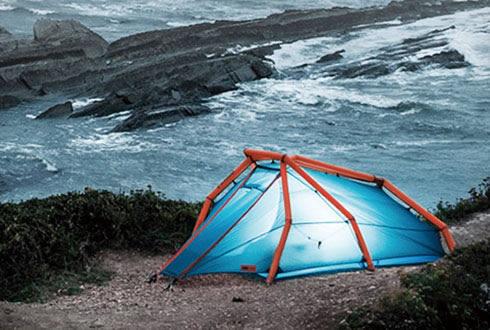 這款帳篷的支撐結構是一種“充氣梁”,你可以在一分鐘之內給帳篷充滿氣,將其支起來。