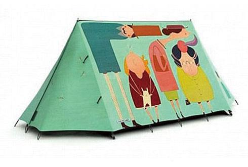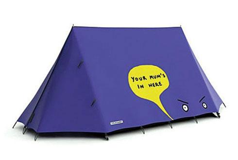 這款帳篷上寫了一個標語:“你媽在這兒!”,雖然粗魯,但對偷窺者是一個警告。