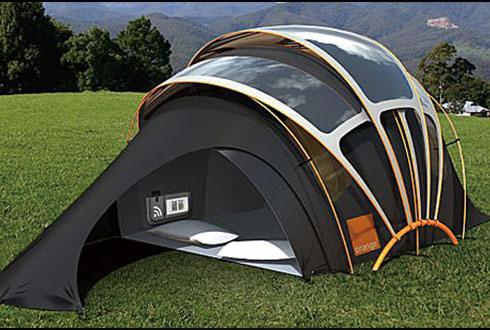 近年來,帳篷設計潮流越發(fā)趨向綠色環(huán)保。這款帳篷設計前衛(wèi),裝有WiFi鏈接裝置、太陽能電池板和照明系統(tǒng)。